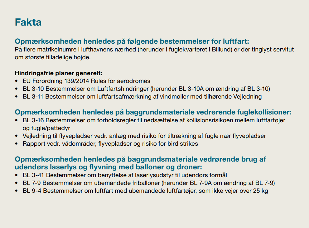 Forhold, der skal iagttages i by og på land som følge af Billund Lufthavn: